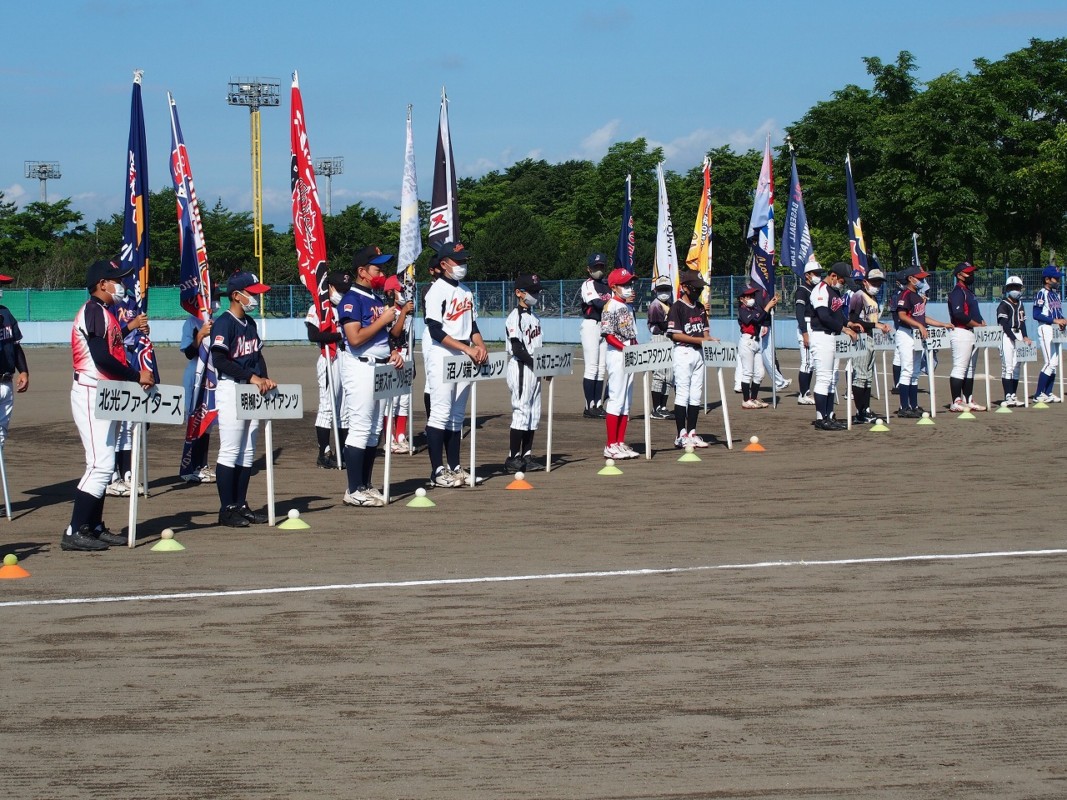 大会は苫小牧少年野球団の14チームが参加、新型コロナウィルスの対策で入場行進は取りやめにしました。