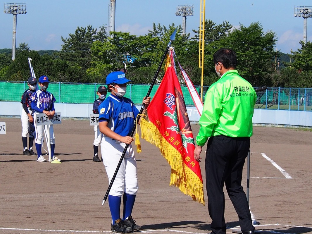 第13回エコアハウス神出設計旗争奪少年野球大会の開会式が1日、苫小牧少年野球場で行われました。