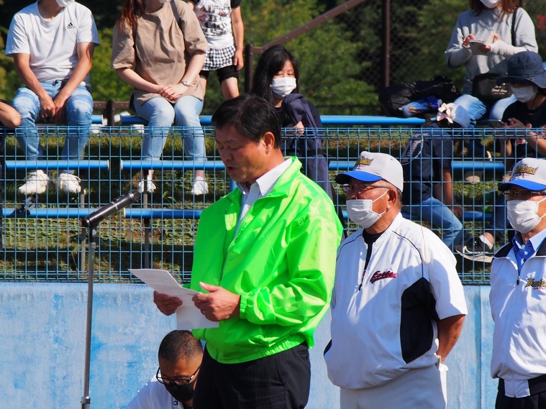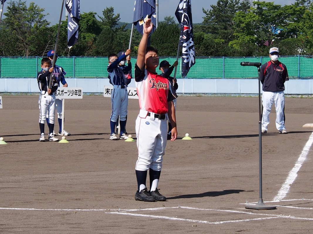 前年度優勝の飛翔スワローズから優勝旗が返還され、選手宣誓では北光ファイターズの主将が宣誓しました。