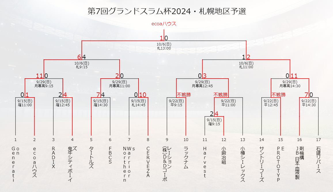 内容:札幌予選2回戦 ecoaHouse 11-0 鬼牛シティボーイズ