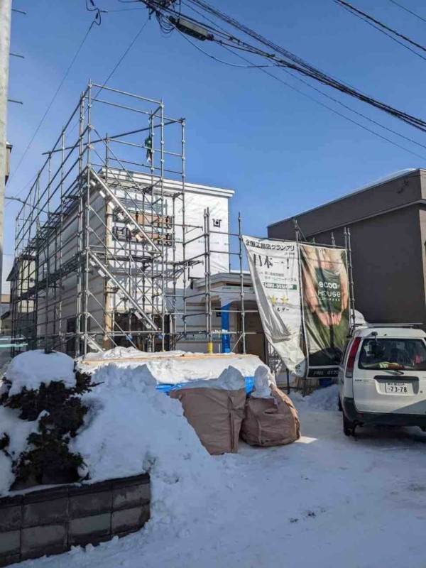 札幌市手稲区 Y様邸スタイリッシュな白基調のGLANZ アクセントの色もこだわった外観のお家です
