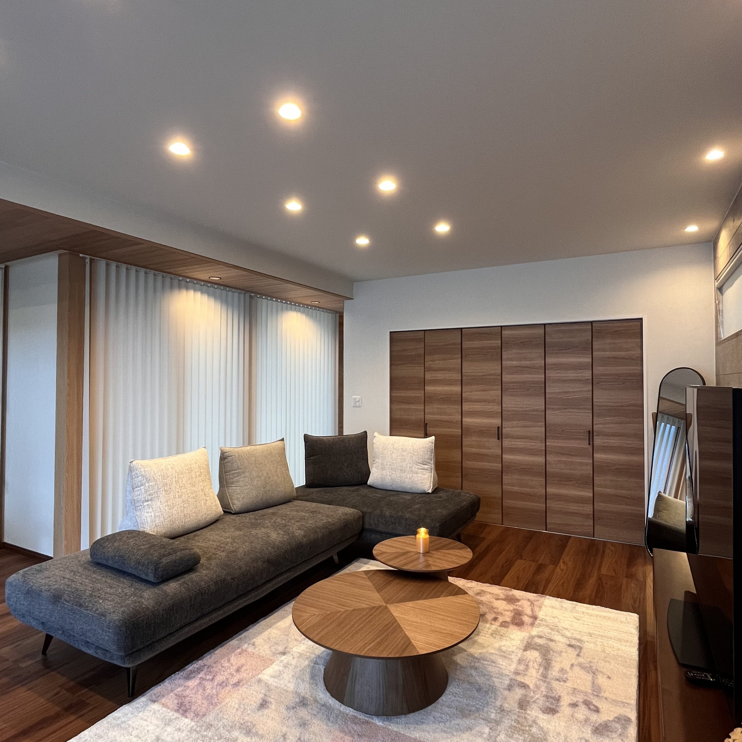 豊平展示場のシンボルのインナーガーデンはもちろん、ビルドインガレージやゲストルームなども加え、より生活しやすい動線に変更しながらも、