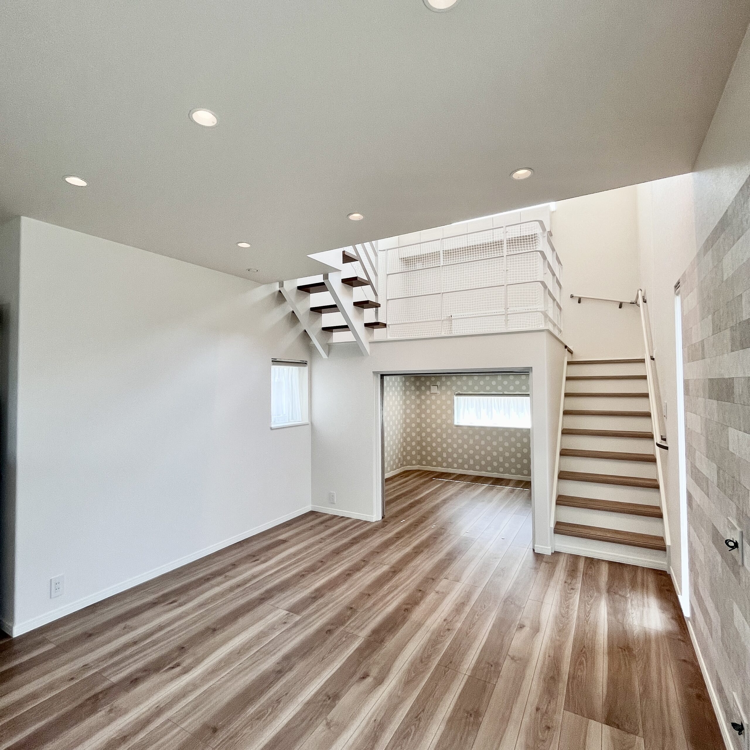 吹き抜け ✕ スキップフロア 立体感豊かなリビング空間