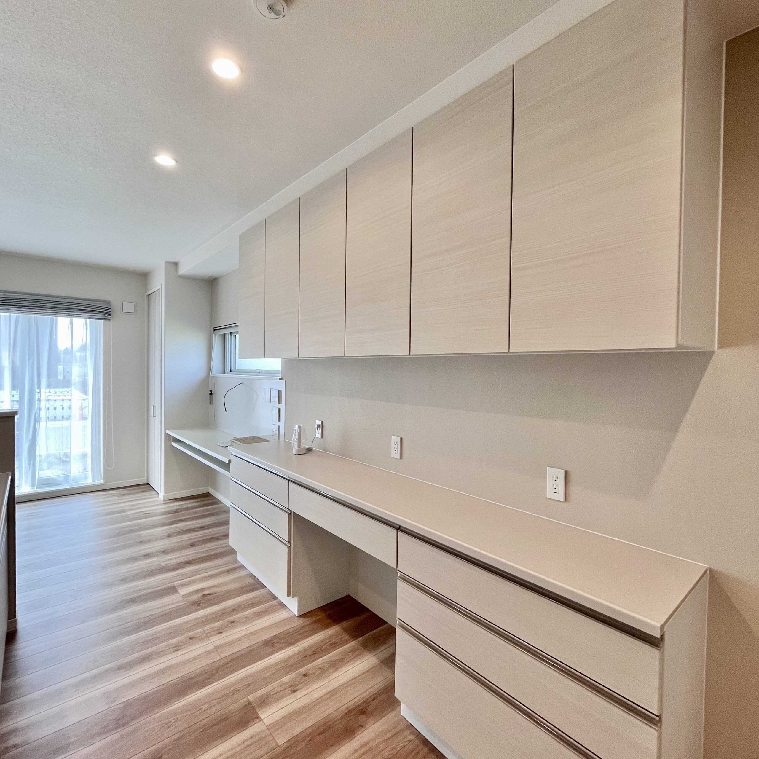 キッチンの横にカウンターを設置し、書き物をしたり、スマートデバイスを充電するのにぴったりなコーナーを造作しました。