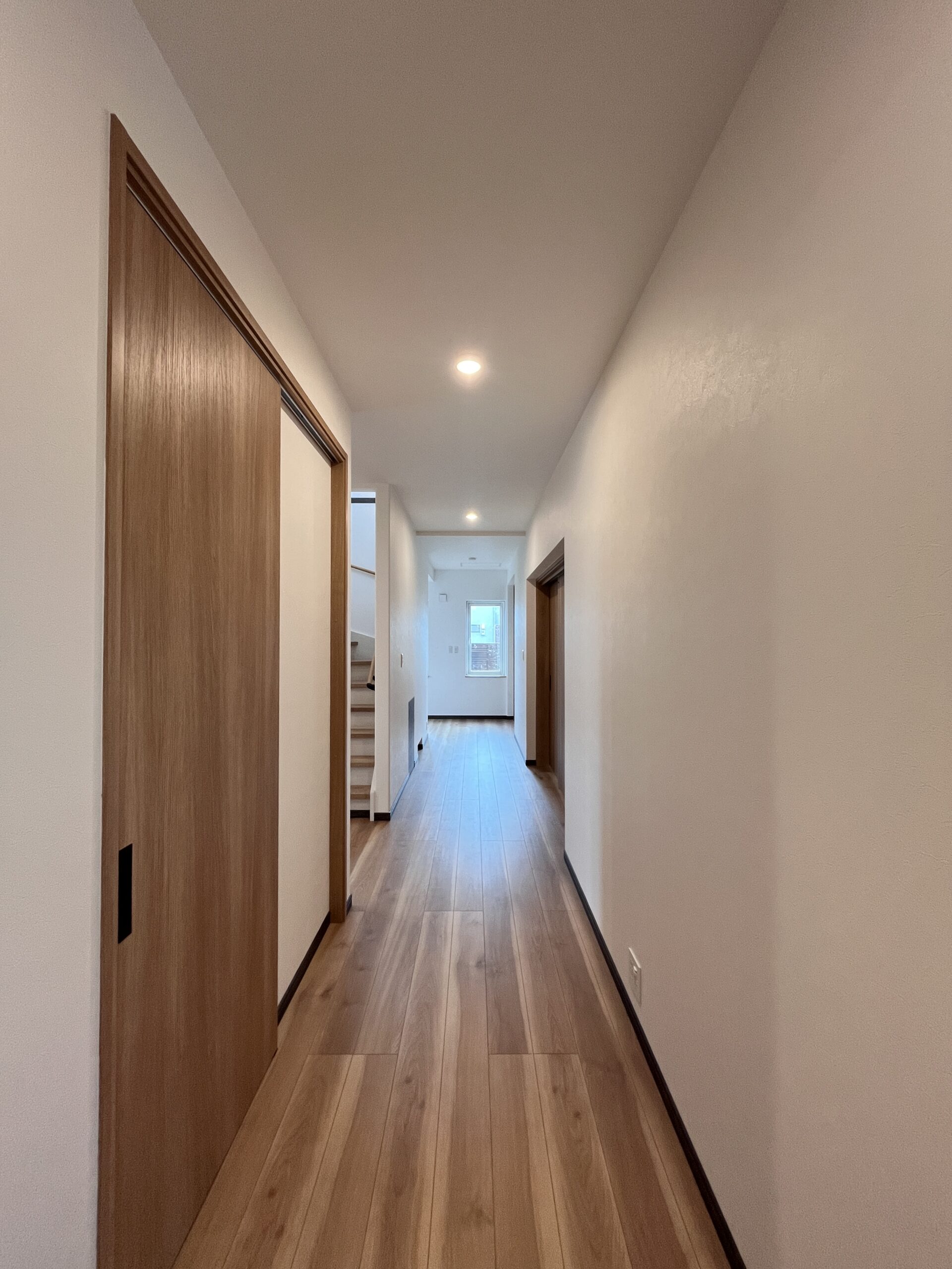 廊下の壁面をすっきり見せながら、使い勝手も兼ね備えています。