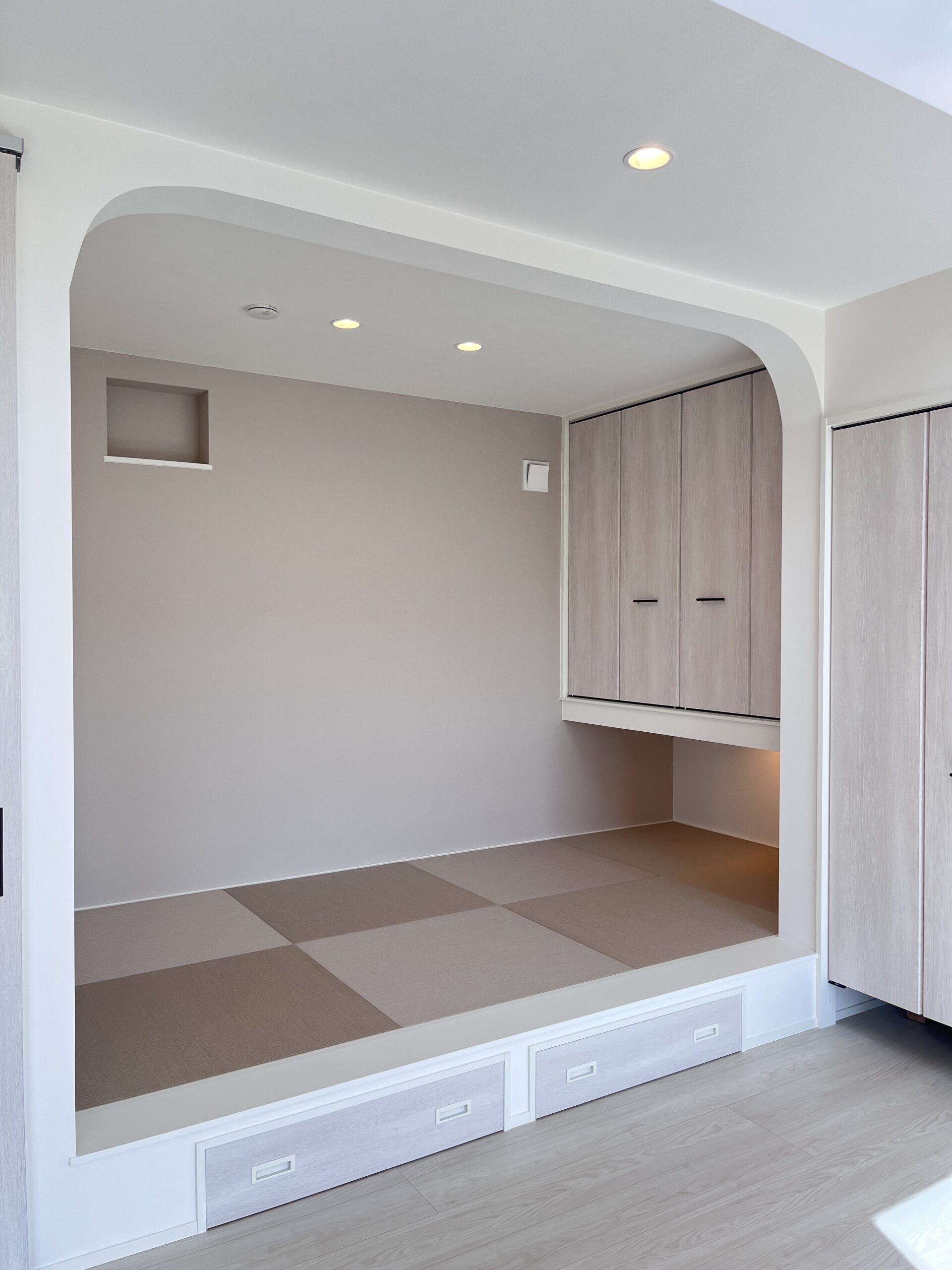 たたみの貼り方向を変えて表情をつけた小上がりスペース。