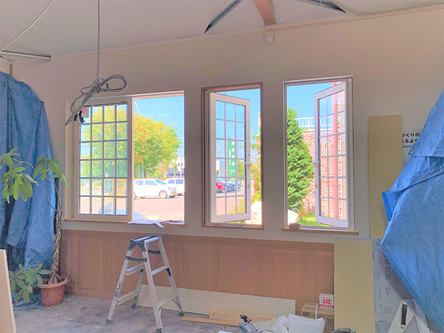 キッズスペースはこの窓に向かって、右手側の奥のほうに位置しています。