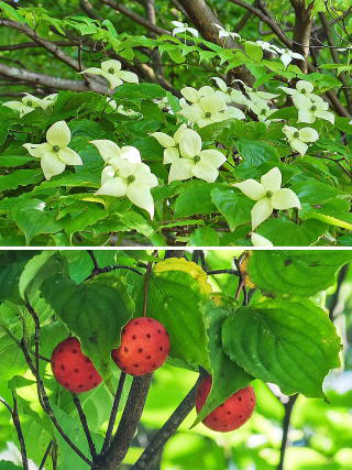 本来センタツリーのヤマボウシは写真のように「白い花」と「赤い甘い実」をつけるのですが