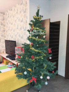 クリスマスツリーが飾られました。