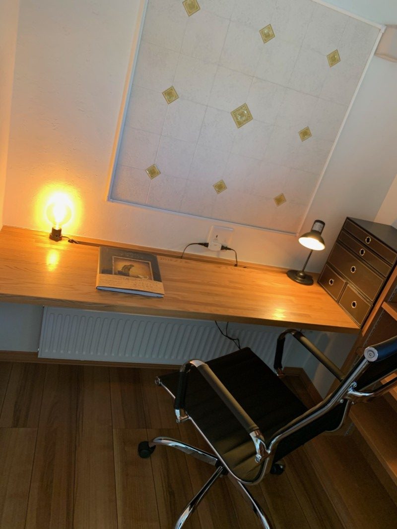 本棚や、間接照明を脇に付けると、充実した空間が広がり、業務や趣味に没頭できる空間になるのではないでしょうか?