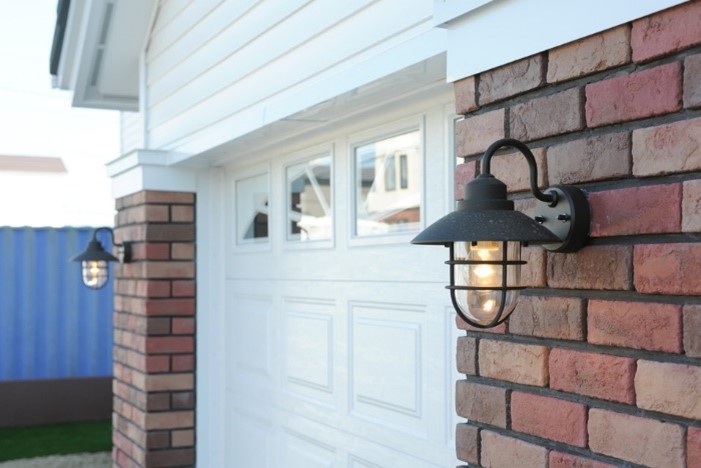 ガレージ両サイドの壁面には、輸入レンガをあしらっています。