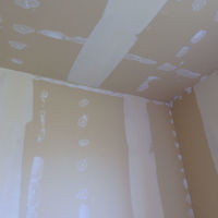 暑い中、クロス屋さんが下地のパテ処理の作業をしていました。