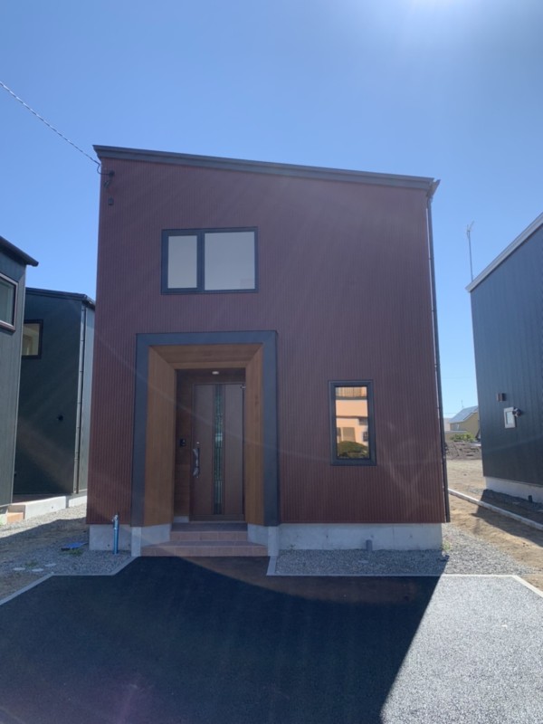 外壁は金属系サイディングのオータムレッドという色を使用しており