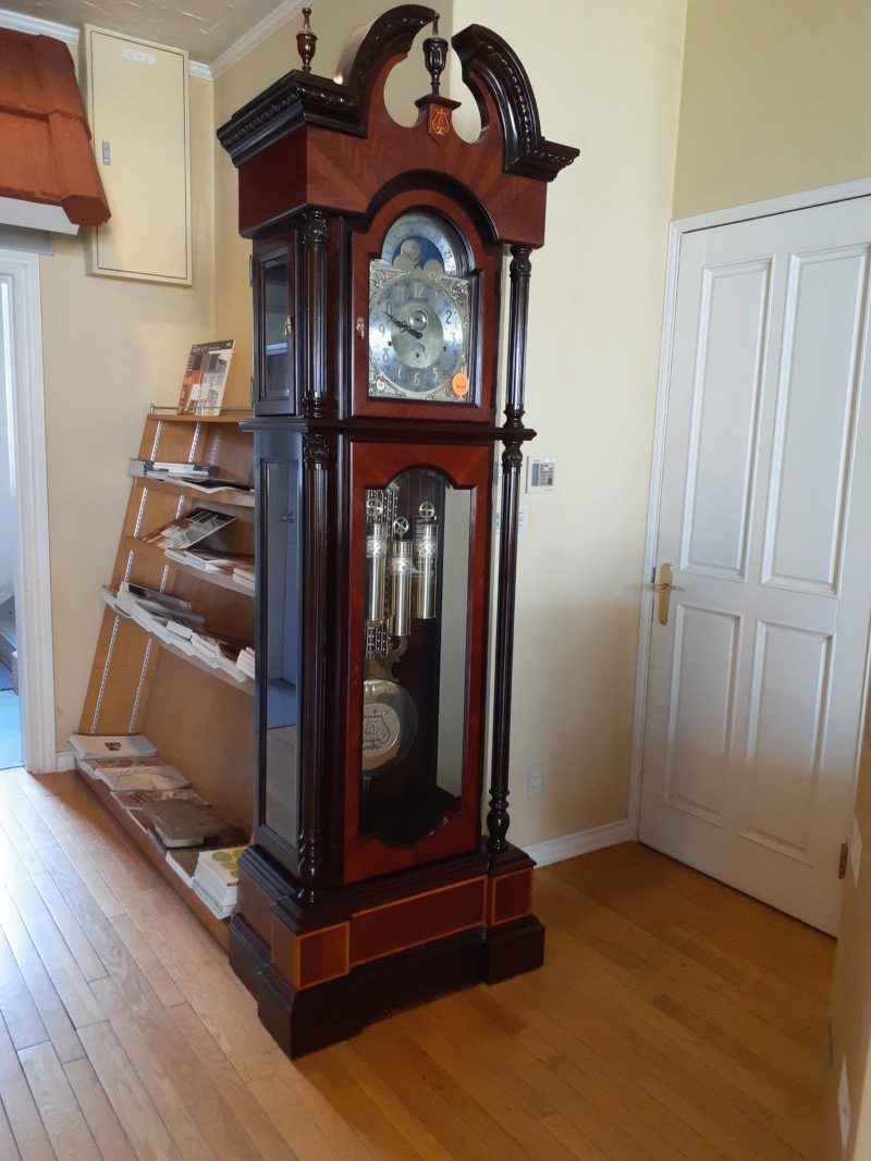 カナダ製の大きな時計があります。機械仕掛けで、一日数分時間が狂いますが、存在感のある大きな時計です。