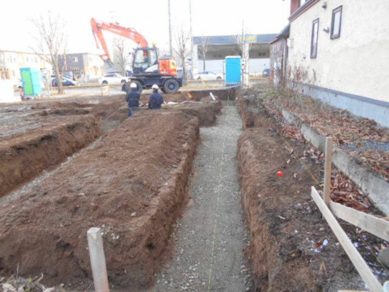 現在は基礎工事を行っております。