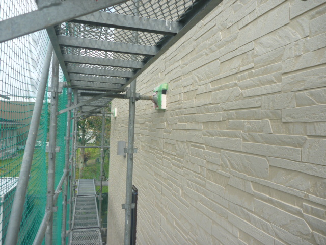 隣地に資材が落ちないよう、ネットを張ってます。