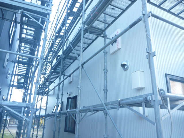 もちろん、外壁が張り終わってからも外壁を傷つけないように、FP板等をクッションに使ってます。