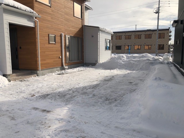 (沼ノ端モデルハウスの除雪の様子です)
