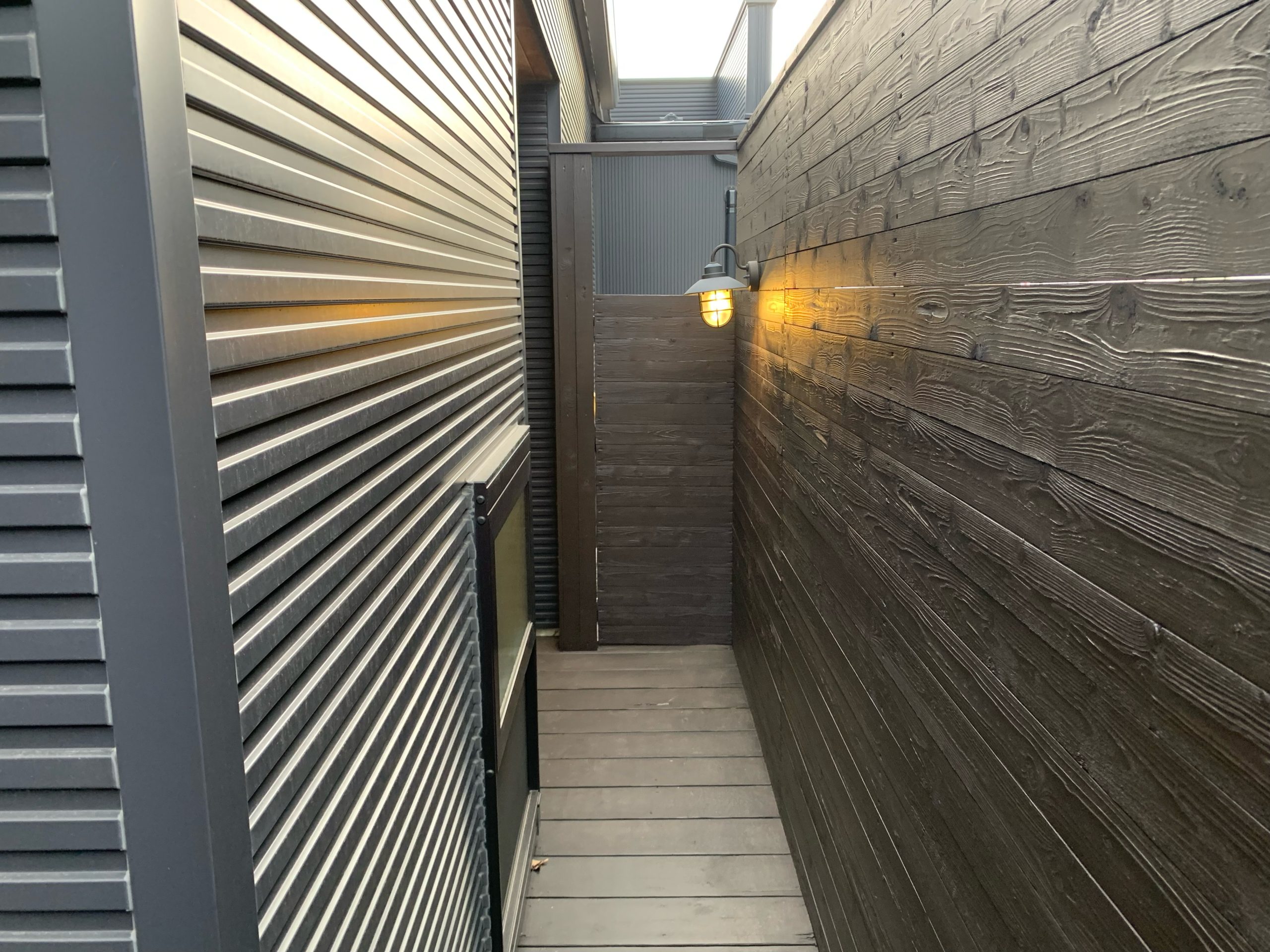 それぞれにウッドデッキ、ウッドフェンスを設けており、先日塗装を行いました!