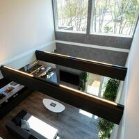 大きな吹き抜けで開放的なリビングになっております。