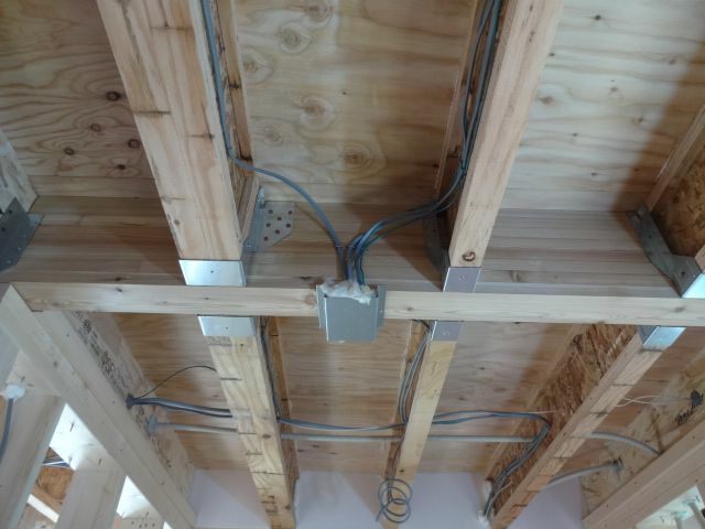 床梁は、貫通出来ませんので、梁下に金物を取付て暖房配管、電線などを保護する為に取付しています。