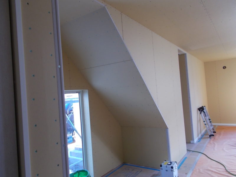 その吹き抜けをなくし、階段も通常の階段に変更しました。