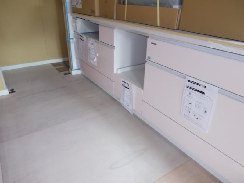 キッチンは、奥様の好きなピンク色の扉にしました。