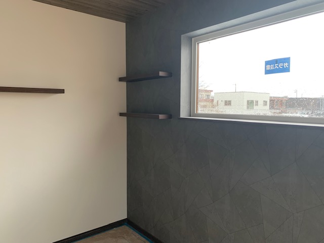 リビングにはご家族の写真などを飾ることが出来る棚を取り付け致しました。