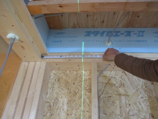レーザーなどを使って建物の垂直などを見たり、図面をチェックしながら適正な位置に材料が配置されているかなどを検査していきます。使用材料の含水率なども測定します!