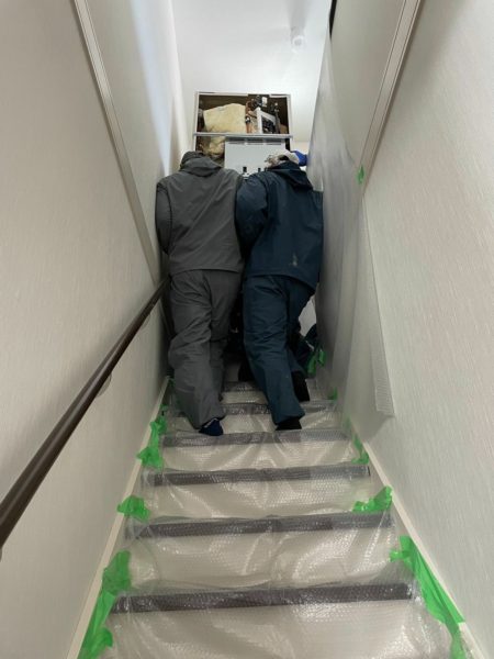 2階に温水器があって、運び出すのに男の職人さんが3人ががりで