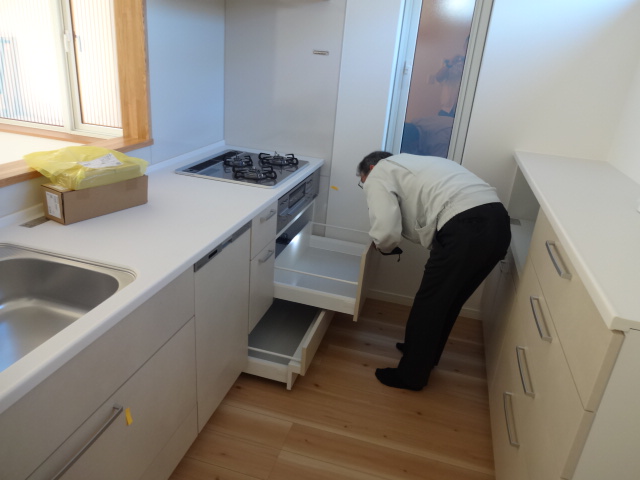システムキッチン内部に異物がないか、又レンジフード作動時の異音の有無等。