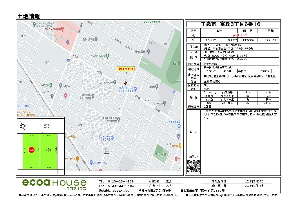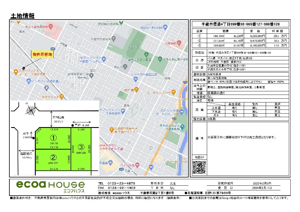 千歳市内にecoaハウスが所有する全ての宅地につきまして、土地情報と共に現地の写真を撮影致しました。グーグルマップ等で