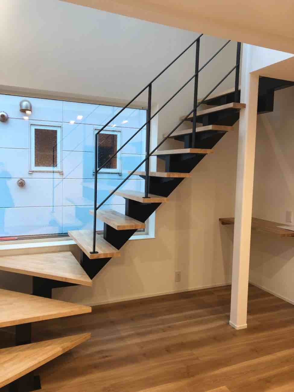 こちらのお家は、大きな吹き抜けとオープン階段が開放感を作り出すお建物となっております。