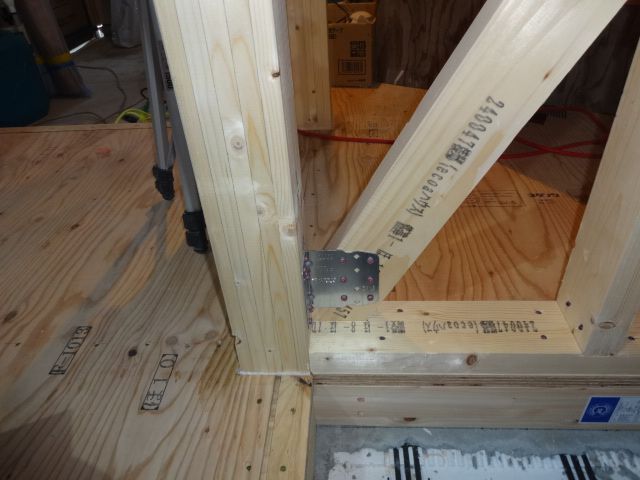 ①筋交いの位置の確認、取付金物のビスの本数のチェック