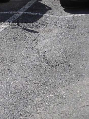 このようなアスファルトでは割れや凹みができやすく、次の写真のように水たまりができてしまいます。